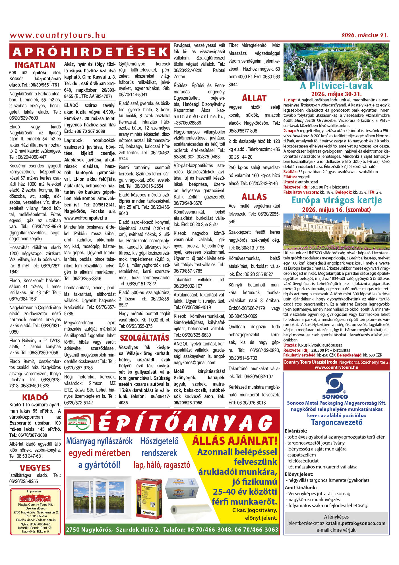 Country Tours hirdető 37. évfolyam 11-12. szám