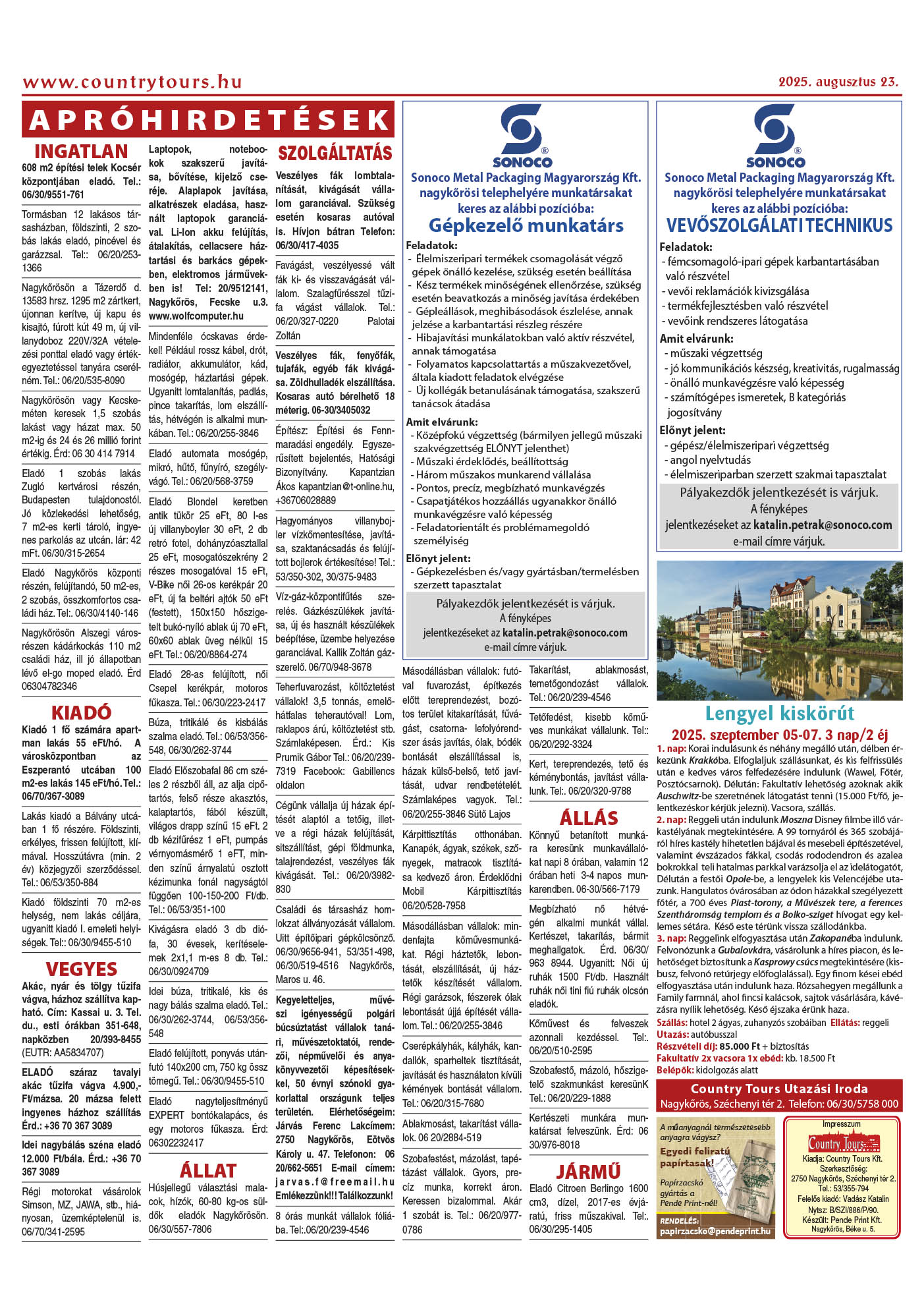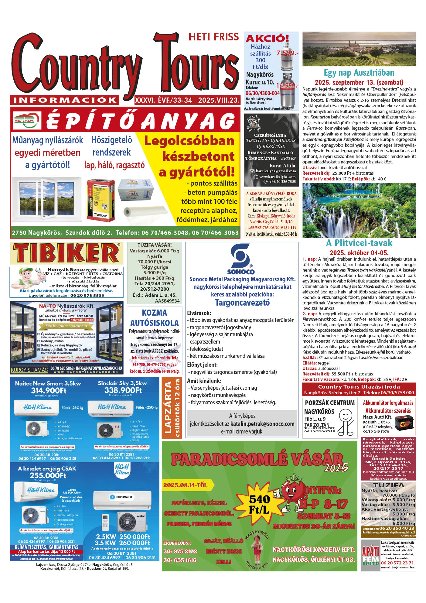 Country Tours hirdető 36. évfolyam 33-34. szám
