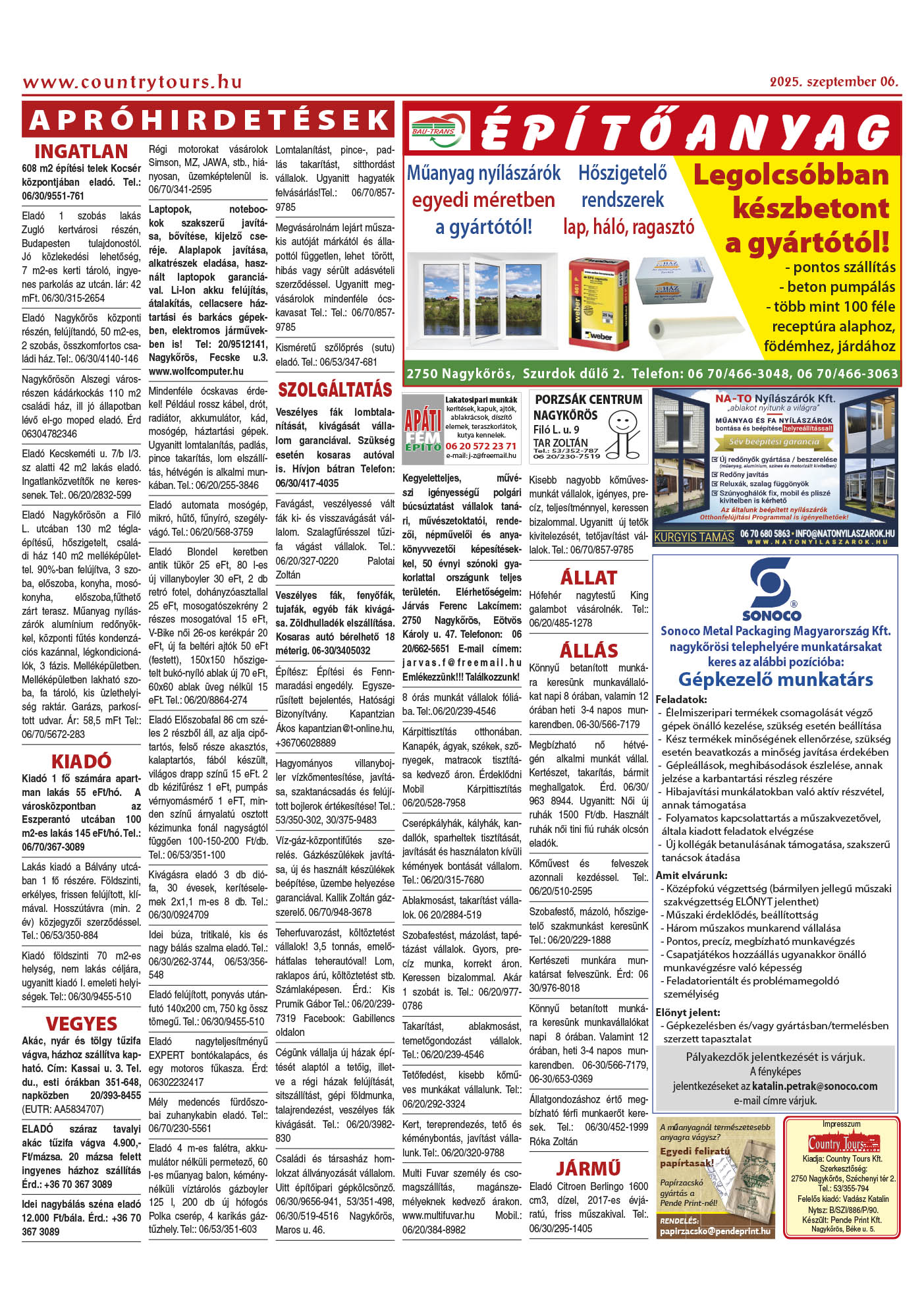 Country Tours hirdető 36. évfolyam 35-36. szám