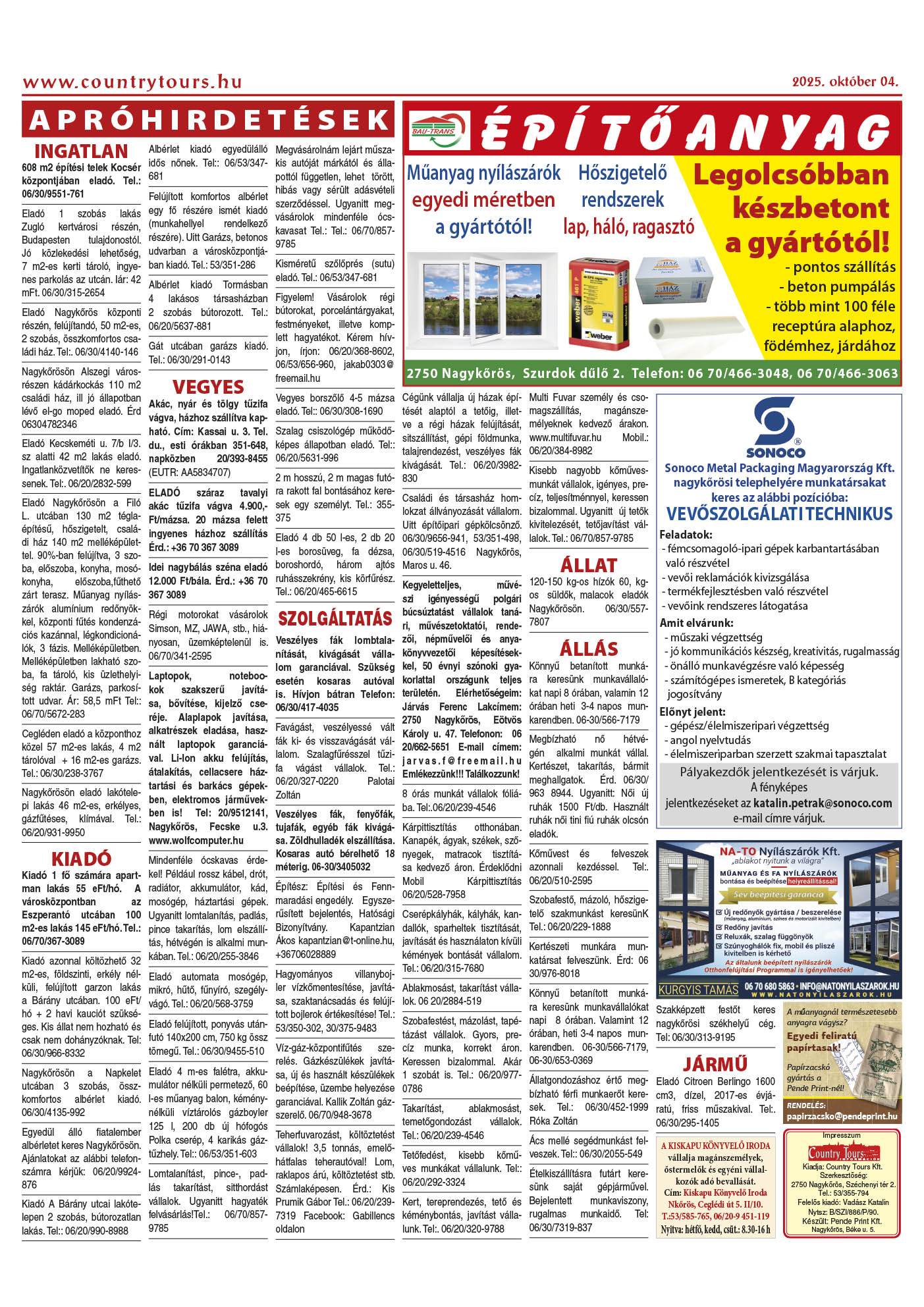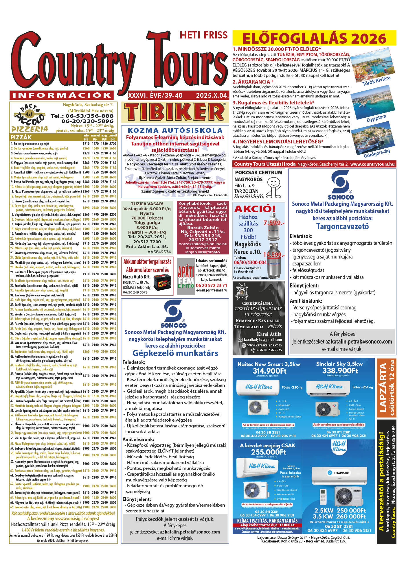 Country Tours hirdető 36. évfolyam 39-40. szám