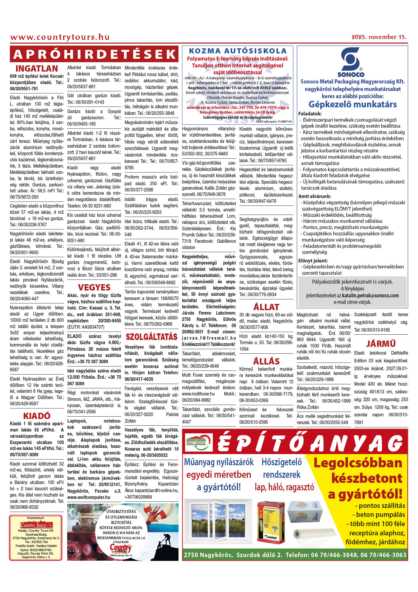 Country Tours hirdető 36. évfolyam 45-46. szám