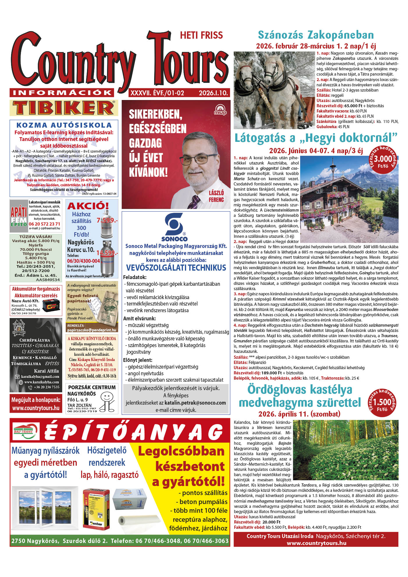 Country Tours hirdető 37. évfolyam 1-2. szám